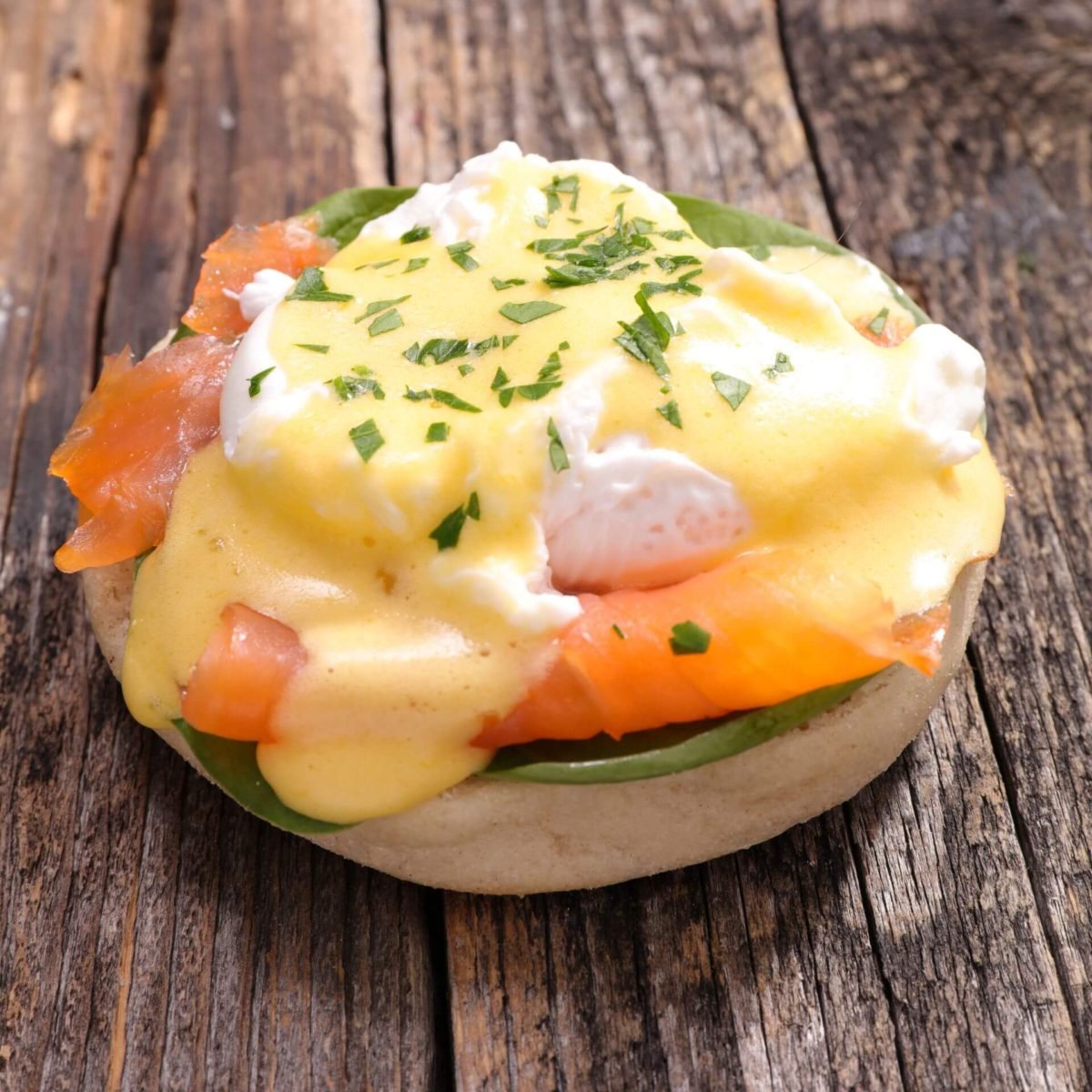 - Assembling the Benedict: Place the toasted muffin halves on a plate. Layer each half with sautéed spinach and onions. Place a slice of vegan smoked salmon on top. Generously drizzle with vegan hollandaise sauce.
